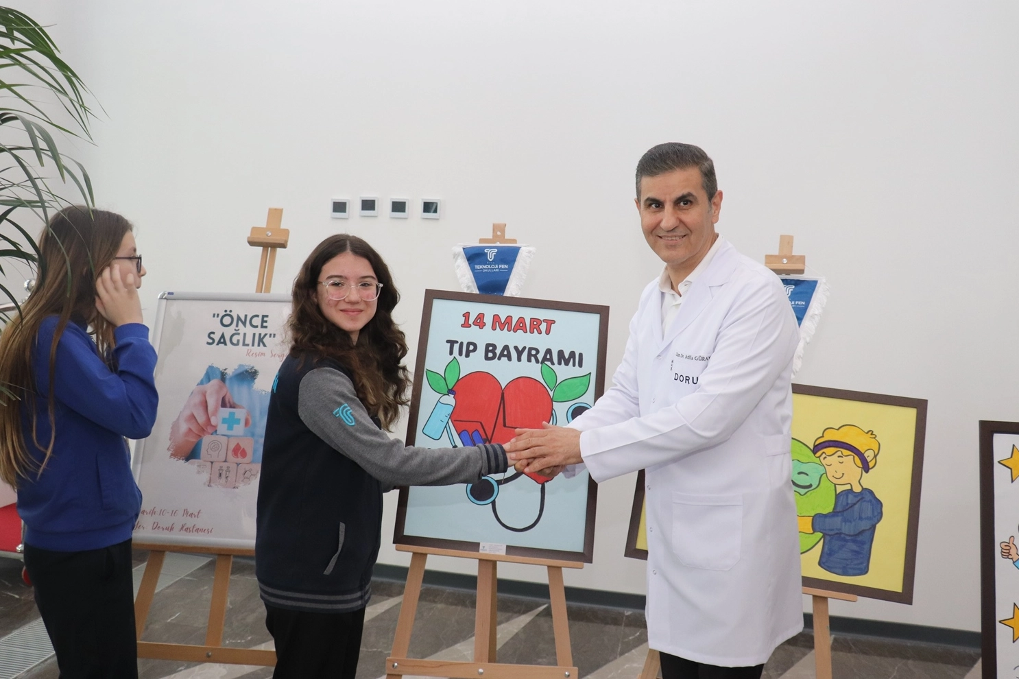 Özel Doruk Nilüfer Hastanesi doktorlarına Özel Teknoloji Fen Koleji öğrencileri tarafından 14 Mart Tıp Bayramını nedeniyle resim hediye edildi.
