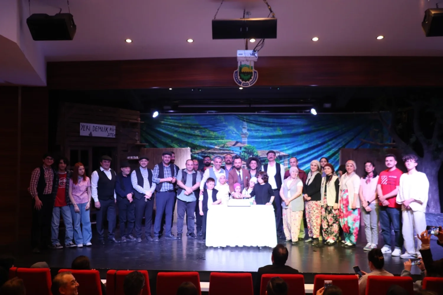 Dünya Tiyatrolar Günü’ne özel olarak sahnelenen gösterinin ardından, İnegöl Belediyesi Şehir Tiyatrosu ekibi için sahnede sürpriz bir kutlama gerçekleştirildi. Önce Belediye Başkan Yardımcısı Fevzi Dülger sahneye geldi. Kısa bir selamlama konuşması yapan Dülger, 27 Mart Dünya Tiyatrolar Gününü kutladı. Ardından tiyatro ekibi adına hazırlanan pasta sahneye getirildi. Pasta oyuncular ve teknik ekip eşliğinde kesildi. Bu anlamlı jest, salondaki izleyiciler tarafından da alkışlarla karşılandı.