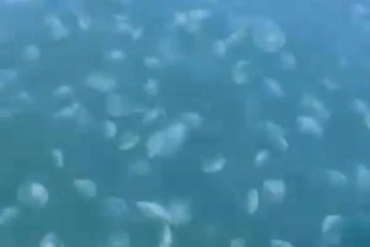 Binlerce denizanası sahili şeridini doldururken, o anlar tekneyle suda ilerleyen balıkçıkların kamerasına yansıdı.