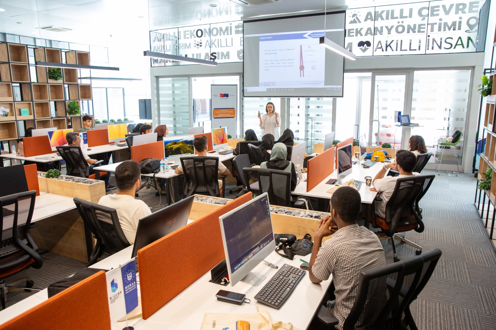 Girişimci adayı gençlere ve girişimcilere hizmet veren B-CUBE Akıllı Şehircilik ve İnovasyon Merkezi’nde, akıllı şehircilik alanında sürdürülebilir insan kaynağının yetiştirilmesi için çalışmalar sürüyor. Bursa Büyükşehir Belediyesi, Avrupa Birliği tarafından finanse edilen ve ICMPD ve TC Sanayi ve Teknoloji Bakanlığı Kalkınma Ajansları Genel Müdürlüğü koordinasyonuyla yürütülen ENHANCER Projesi'nin Ortak Kullanım Tesisleri Hibe programından yaklaşık 240 bin Euro’luk hibe desteği almayı başardı. Projeyle, genç girişimci adayları Bursa’nın sosyo-ekonomik büyüme sürecine dâhil edilerek yerel girişimciliğin geliştirilmesi amaçlanıyor. Proje sonunda istihdam fırsatlarının artırılması için girişimci adaylarının etkileşimde bulunabileceği ‘Girişimcilik ve İnovasyon Merkezi’ oluşturulması, girişimcilik yeteneklerinin bu merkezde arttırılması hedefleniyor. Proje kapsamında seçilen 30 kişiye 21 hafta boyunca 3 boyutlu tasarım eğitimleri veriliyor. Girişimci adayları hiçbir ücret ödemeden gelişmiş görselleştirme yeteneği, oyun geliştirme, VR/AR uygulamaları, prototipleme konularında tasarım yapmayı öğrenme fırsatı buluyor. Katılımcılar, kendi iş fikirlerini geliştirecek eğitimler alarak iş modeli ve müşteri doğrulama, pazar ve rakip araştırması, zaman yönetimi, tasarım odaklı düşünme, yenilenebilir enerji ve girişimcilik konularında kendilerini geliştirme fırsatı buluyor.
