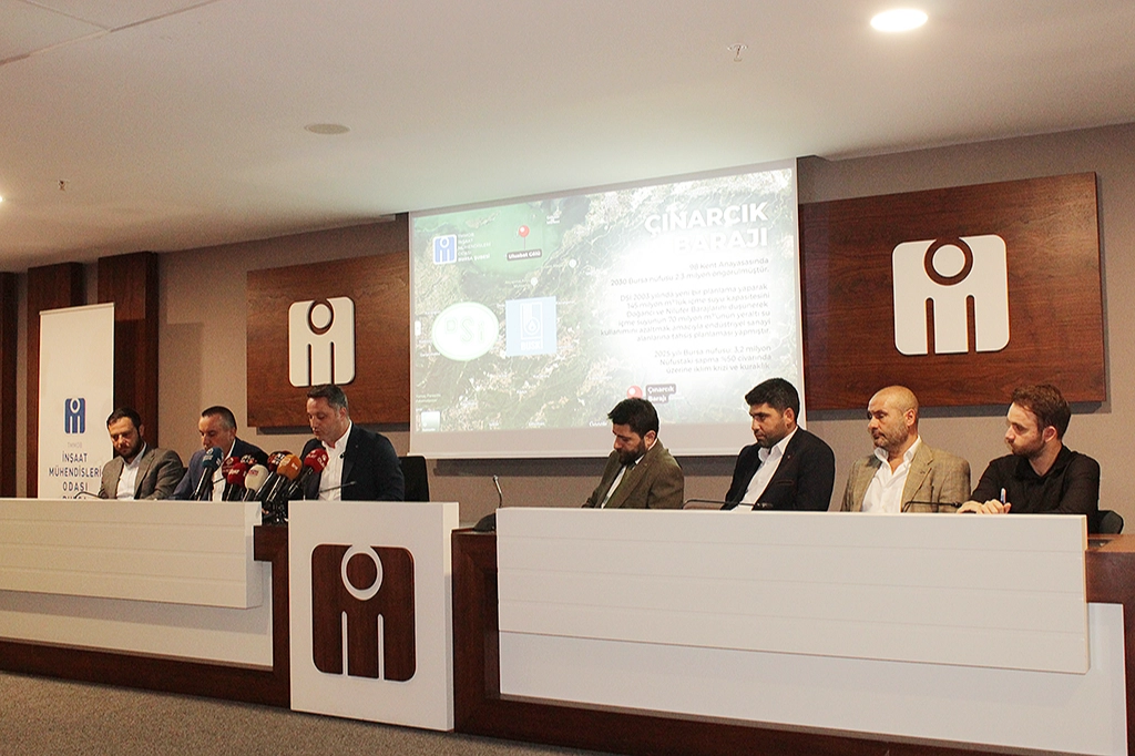 98 yılında yapılmış kent anayasamızın korunamamış, geliştirilememiş ve tüm kırmızı çizgilerinin delik deşik edilmiş olması önümüzde duran en önemli problemdir. Çınarcık Barajı 1987 yılında DSİ tarafından Bursa’nın gelecek projeksiyonu nüfus ve büyüme açısından planlanırken içme/kullanma suyu, tarımsal sulama ve Uluabat Gölü’nün ekolojik yaşamının sürdürülebilirliği amacıyla projelendirilerek gündeme alınmıştır. Bu aşamada Bursa çevresindeki yakın ve potansiyeli küçük olan su kaynaklarından Bursa'nın uzun vadeli su ihtiyaçlarını karşılamak mümkün olamadığından Çınarcık Barajı’na uzun vadede başvurulmak zorunluluğu çıkmıştır. Bu nedenle Çınarcık barajı içme suyu + tarımsal sulama + enerji amaçlı olarak yeniden çalışılmıştır. Çınarcık Baraj yerinde yıllık ortalama akım 743,4 milyon m³’tür. Bu suyun %77’si Uluabat Gölü’ne çevrilerek enerji üretilmesi ve tarımsal sulama için planlanmıştır. Şu bilgiyi de aktarmak isteriz ki 98 yılında yazılmış olan anayasamızda 2030 yılı nüfusu 2,3 milyon öngörülmüşken bugün yani 2025 yılında 3,2 milyonu aşmıştır. Bu da projeksiyonlarda sapma olabileceğini açıkça ortaya koymaktadır. Şimdi 2050 yılında öngörülen nüfustaki muhtemel sapma ile geçmişteki uygulamalar ve anayasamızın korunamamış olması gerçeğini önümüze koyduğumuzda 2050 yılı için yazacağımız anayasa açısından bizleri endişeye sevk etmektedir. Bu sebeplerle Çınarcık Barajı’nın da Bursa’mıza yetersiz kalacağı ortadayken korunmasının önemini siz basın mensupları aracılığıyla tarihe not düşmek istiyoruz.