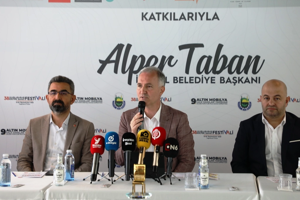 İnegöl’ün kültürel kimliğini güçlendirmeyi ve farklı kültürleri bir araya getirerek birlik ve beraberliği pekiştirmeyi amaçlayan 38.Uluslarararsı Kültür Sanat Festivali’nin tüm detaylarını İnegöl Belediye Başkanı Alper Taban Yeni Yaşam Alanı içerisinde yer alan Sergi Salonunda düzenlenen basın toplantısı ile paylaştı. Basın toplantısına; İnegöl Belediye Başkanı Alper Taban, İnegöl Belediyesi Kültür ve Sanat Komisyonu, İnegöl’de kültürlerini yaşatan derneklerin başkan ve yöneticileri katılım sağladı.
