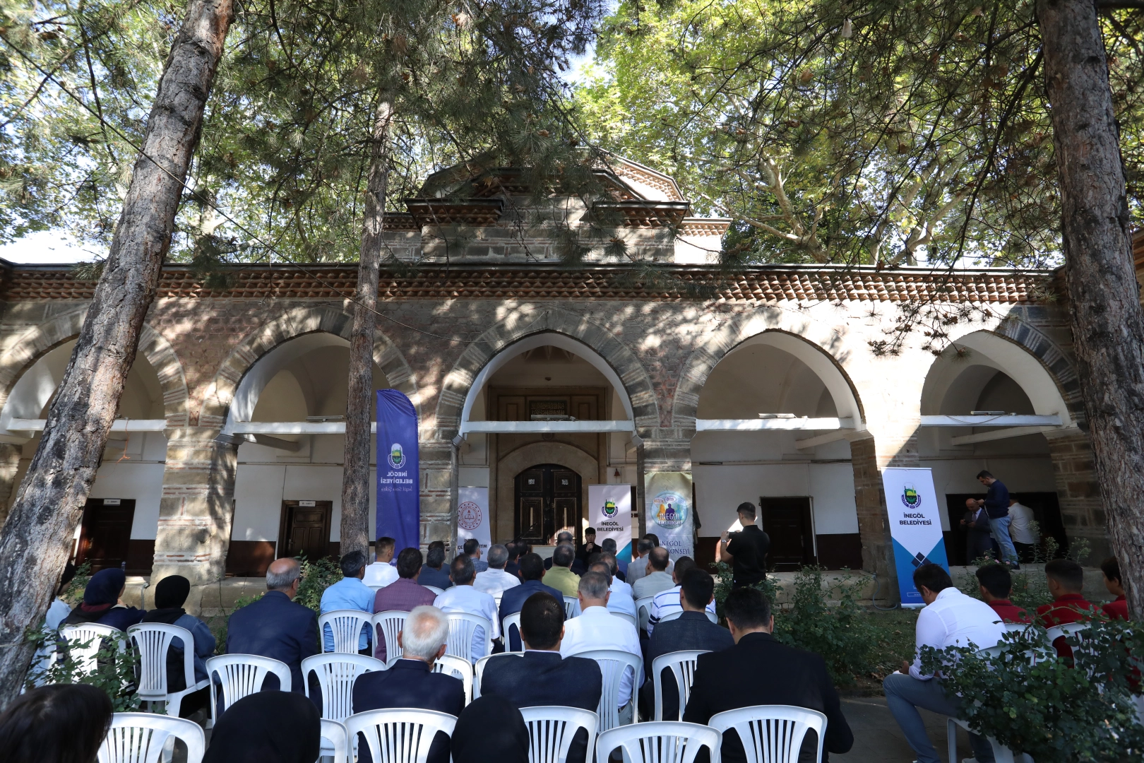 Milli Eğitim Müdürü Ali Doğru ise “2023-24 eğitim öğretim yılının ilk gününde, şehrimizin merkezini oluşturan, adını Fatih Sultan Mehmet döneminde Vezir-i Azam olarak görev yapan İshak Paşa’dan alan İshakpaşa Külliyemizde sizlerle bulunmaktan mutluluk duydum. Bu coğrafyaya hükmeden ve bu toprakların vatan olmasını sağlayan nice kahramanlar vardır. Bu kahramanların her biri, yaşadığı dönemde vatan coğrafyasının her sathında derin izler bırakan eşsiz şahsiyetlerdir. Bu açıdan bakıldığında şehrimizde bulunan gazilerimiz ve şehitlerimizin hikayeleri bizler için çok kıymetlidir. Bizler de bugün öğrencilerimizle yeni eğitim öğretim yılının ilk dersinde Osmanlı Hanedanının ilk şehidi Baykoca’nın türbesinde, bayrağımız için canlarını veren 83 şehidimizin bulunduğu Halhalca İstiklal Şehitliği, 1299 yılında İnegöl’ü fetheden Turgut Alp’in türbesi ve burada bulunduğumuz İshakpaşa Külliyesinde geçmişimizi bugüne getirmeye çalıştık” diye konuştu.