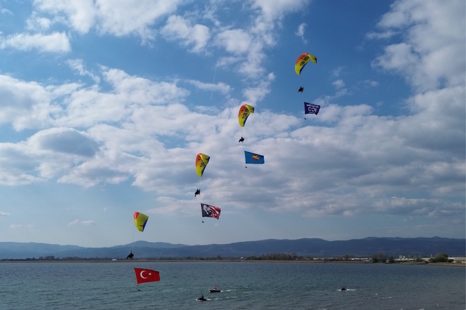 Marmara Bölgesi’nin en büyük gölüne ev sahipliği yapan İznik, hafta sonu gökyüzünde gerçekleşen heyecan verici bir etkinliğe sahne oldu. İznik Gölü üzerinde düzenlenen paramotor gösterisinde Türk Hava Kurumu ve Katar Paramotor Milli Takımı, izleyenlere unutulmaz anlar yaşattı.