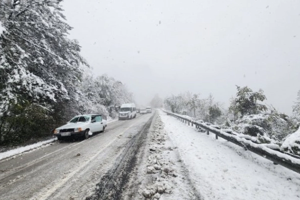 Trafiğin zaman zaman durduğu ve araç kuyruklarının oluştuğu karayolunda ulaşım güçlükle sağlanıyor.