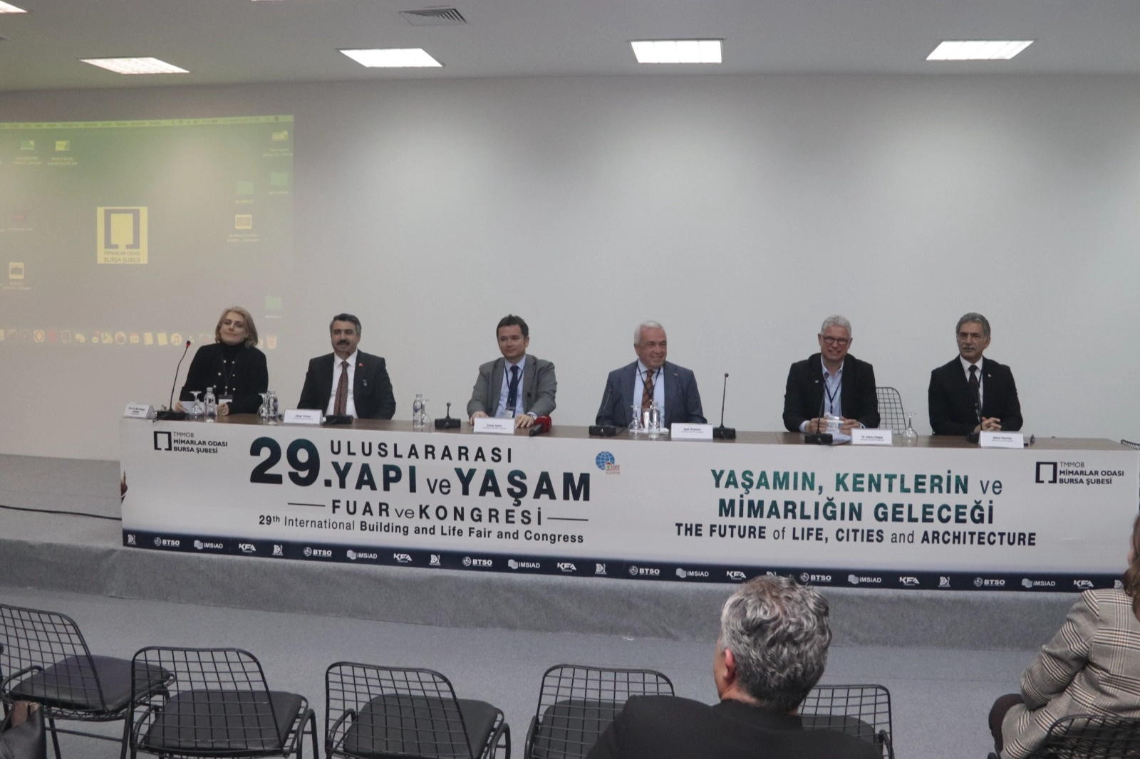 Bursa Mimarlar Odası Bursa Şubesi’nin eski dönem başkanlarından Orhan Efe de konuşmasında uluslararası yapı ve yaşam kongresinin ilkinin kendi başkanlığı döneminde 1989 yılında gerçekleştirildiğini hatırlattı.