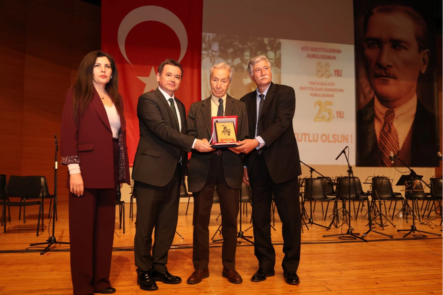 Saygın bilim insanı Prof. Dr. Bilsay Kuruç, Aydınlanma Onur Ödülü’nü Osmangazi Belediye Başkanı Erkan Aydın, Yeni Kuşak Köy Enstitülüler Derneği Genel Başkanı Prof. Dr. Ethem Duygulu ve Yeni Kuşak Köy Enstitülüler Derneği Bursa Şube Başkanı Jülide Akköprü’nün elinden aldı. Düzenlenen törende Hasan Ali Yücel Mandolin Orkestrası konser verirken, Yeni Kuşak Köy Enstitülüler Derneği Bursa Şubesi Halk Oyunları Topluluğu da sahnelediği gösteriyle geceye renk kattı.