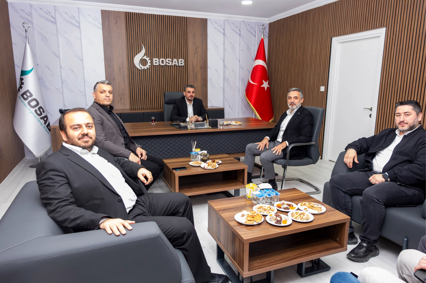MÜSİAD Bursa Şube Başkanı Alparslan Şenocak ve Yönetim Kurulu Üyeleri, Kestel Organize Sanayi Bölgesi (Kestel OSB) Yönetim Kurulu Başkanı Cem Hısımcıl ve Barakfakih Organize Sanayi Bölgesi (BOSAB) Yönetim Kurulu Başkanı Erdoğan Akyıldız’ı ziyaret etti. Ziyaretlerde Bursa sanayisinin güncel durumu, üretim alanları sorunu ve OSB mevzuatındaki son değişiklikler ele alındı.