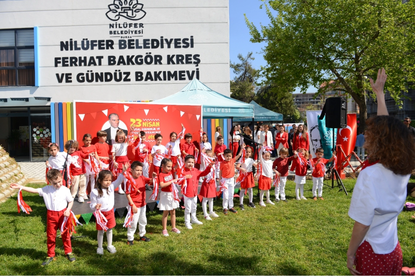 Kreşlerde ayrı ayrı düzenlenen kutlama programlarına, çocukların aileleri, Nilüfer Belediye Başkan Yardımcıları Serpil Altun, Okan Şahin ve Emre Karagöz ile Nilüfer Belediye Meclisi Üyeleri katıldı. Saygı duruşu ve İstiklal Marşı ile başlayan törenler, 3-6 yaş arasındaki çocukların hazırladığı birbirinden renkli gösterilerle devam etti.