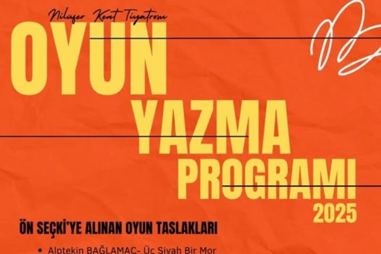 Nilüfer Belediyesi Kent Tiyatrosu'nun, yerli tiyatro repertuvarına nitelikli ve özgün eserler kazandırmak amacıyla hayata geçirdiği Oyun Yazma Programı 2025'te ön seçki süreci tamamlandı. Yoğun başvurular arasından titizlikle seçilen dört taslak metin, profesyonel bir atölye sürecinden geçerek, tiyatro oyunu haline getirilecek. Başvurular, tiyatro alanında deneyimli isimlerden oluşan Oyun Yazma Programı 2025 Seçici Kurulu tarafından, büyük bir titizlikle değerlendirildi. Kurulda, Doç. Dr. Oğuz Arıcı, Dr. Öğr. Üyesi Pınar Arık, oyuncu Cengiz Bozkurt, Devlet Tiyatroları sanatçısı Y. Emir Çiçek ve Nilüfer Belediyesi Tiyatro Müdürü Kazım Güçlü de yer aldı.Yapılan değerlendirmeler sonucunda, Alptekin Bağlamaç'ın "Üç Siyah Bir Mor", Elif Danyal'ın "Değişim İade", Ozan Gökmen'in "MOTOKURYE" ve Arzu Okur'un "İncitmebeni" isimli eserleri atölye sürecine girmeye hak kazandı.Ön seçkiyi geçen dört taslak metin, Eylül ayında başlayacak ve Doç. Dr. Oğuz Arıcı'nın yürütücülüğünde gerçekleşecek atölyelerde geliştirilecek. 20 Şubat 2026 tarihine kadar devam edecek olan sürecin sonunda, Ana Seçki'ye girecek oyunlar belirlenecek. Seçilen bu eserler, kitaplaştırılarak Türk tiyatrosu repertuvarına kazandırılacak.
