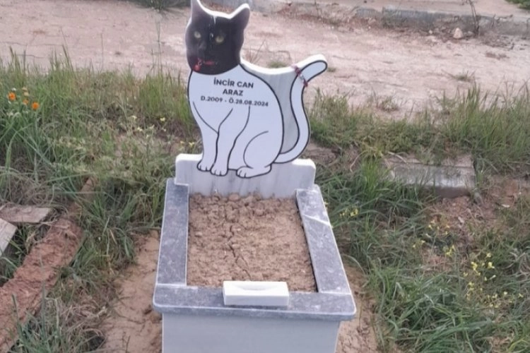 Bir vatandaşın çok sevdiği kedisi için yaptırdığı kedi mezarının üzerinde, ölen kedinin resmi, ismi ile doğum ve ölüm tarihinin yer aldığı görüldü.