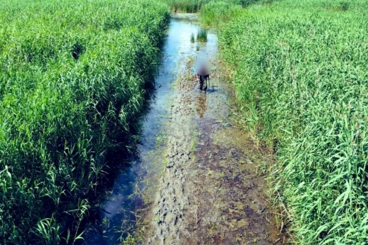 Yoğun sazlık nedeniyle karadan ulaşımın zor olduğu bölgede, arama faaliyetlerine drone desteği de sağlandı.