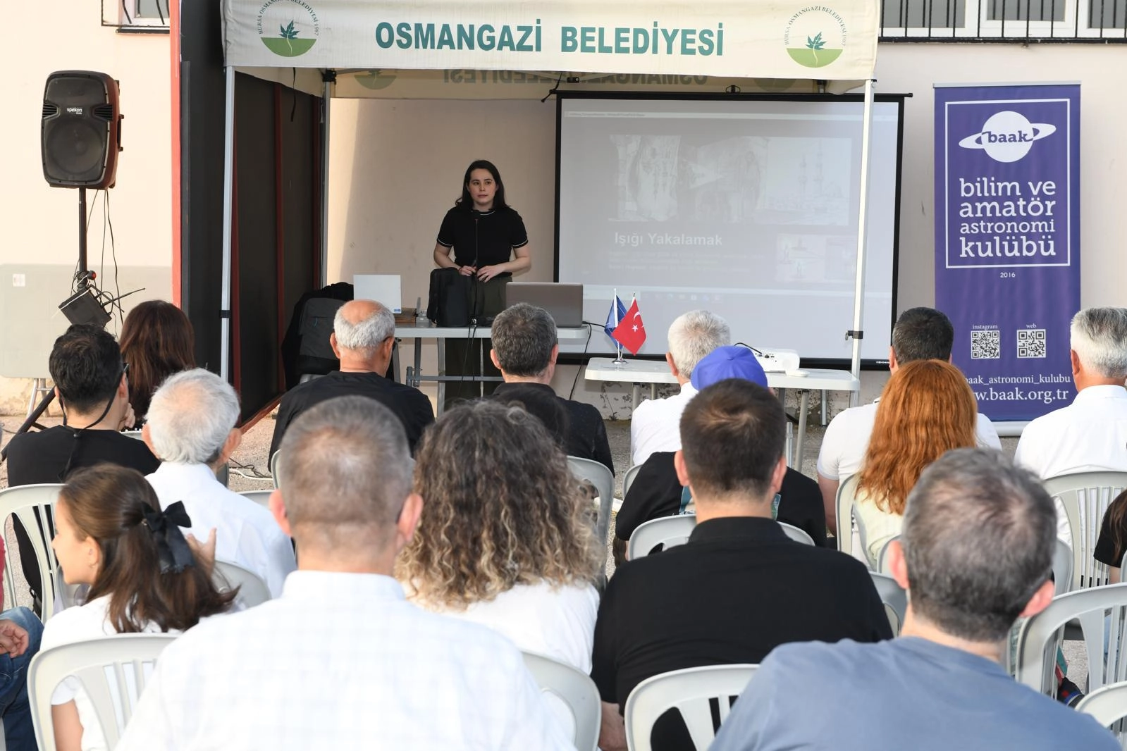 ‘Işığın tarihsel olarak insanlık tarihindeki yerini konuştuk’ Işığı daha yakından tanımak için bir araya geldiklerini belirten Bursa Uludağ Üniversitesi Araştırma Görevlisi Azize Malay, "Işık teknolojileri üzerine çalışmalar yapmaktayım. Bunu topluma nasıl öğretebiliriz bunun üzerine çalışıyorum. Işığı daha yakından tanımak için bir araya geldik. Bunun bir yolunda astronomik gözlem yıldızlar bize en küçük temel ışık parçacıkları olarak bize kaynak sağlıyorlar. Bugün burada ışığı daha temelinde konuşacağız. Işığın tarihsel olarak insanlık tarihindeki yerini konuştuk. Işık özellikle 21'inci yüz yılda hayatımızın inanılmaz bir parçası ve her yerde biz ışığa baktığımızda küçük ve büyük Işık kaynaklarını görüyoruz ama telefonlarımızdaki ekranlarındaki Işık kaynaklarından tutun da göremediğimiz bir çok yerde Işık var. Işık 21'inci yüzyılın ilerleyen ve gelişen yenilikçi bir alanı ve teknoloji kaynağı, 19'uncu yüzyıl buharla, 20'inci yüzyıl elektrikle geliştiyse 21'inci yüzyılda ışıkla gelişecektir. Burada bu yüzden ışığı konuşmak için toplandık. Osmangazi Belediyesi ve BAAK Kulübüne bana bu imkanı sağladığı ve beni buraya davet ettiği için çok teşekkür ederim’ şeklinde konuştu.