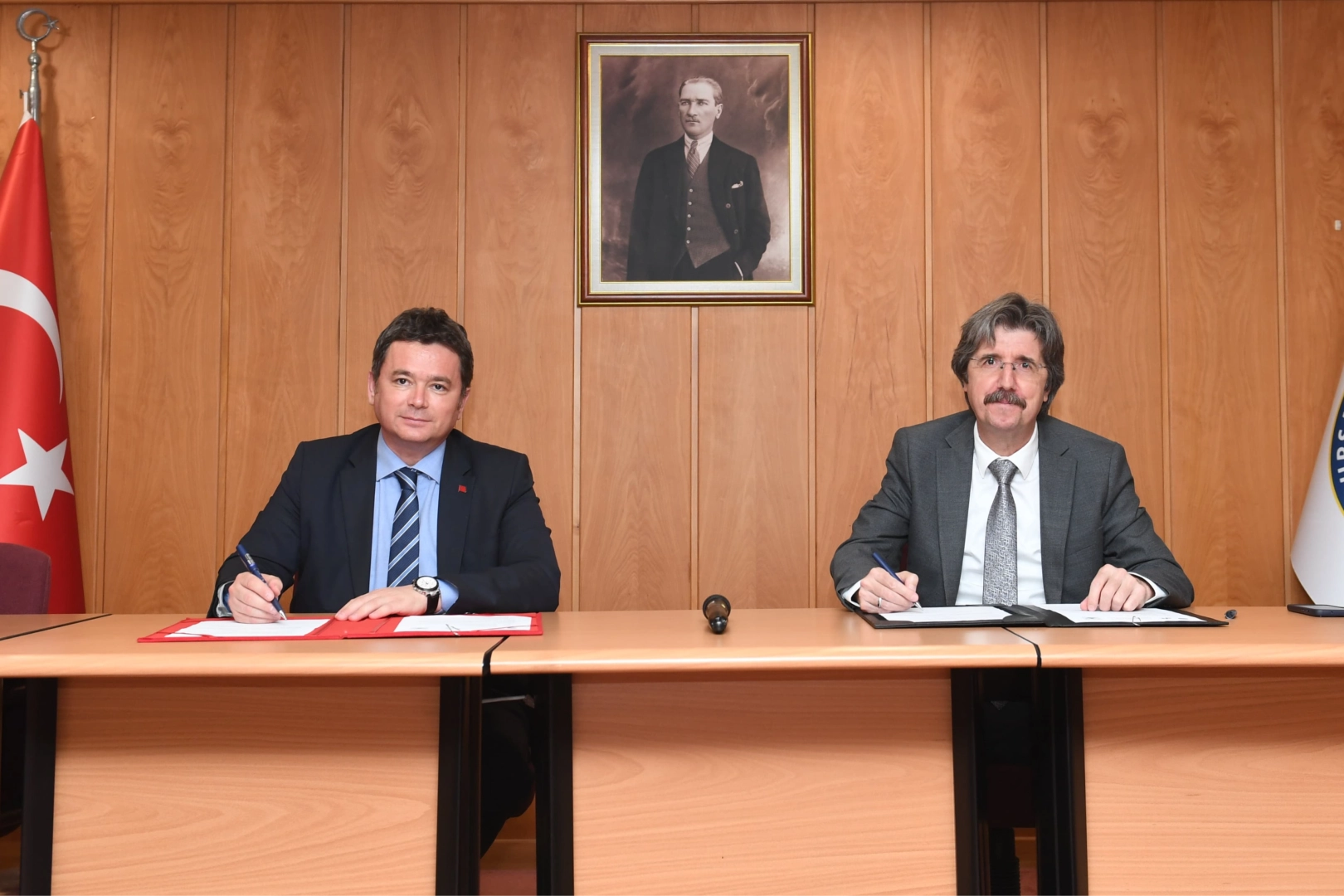 Bursa Uludağ Üniversitesi Rektörlük Binası’nda imzalanan protokolün ardından Osmangazi Belediye Başkanı Erkan Aydın ve Bursa Uludağ Üniversitesi Rektörü Prof. Dr. Ferudun Yılmaz, günün anısına birbirine hediye takdim etti.