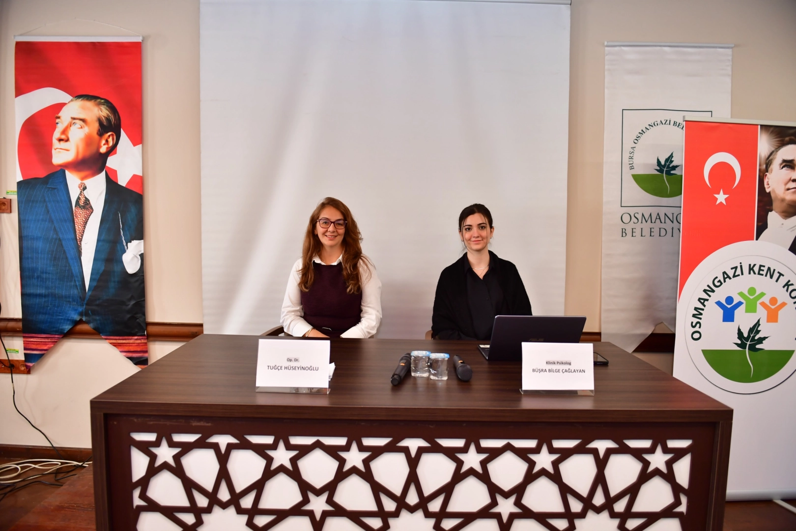 Konuşmaların ardından Osmangazi Kent Konseyi Başkanı Sevim Sakallı, Op. Dr. Tuğçe Hüseyinoğlu ve Klinik Psikolog Büşra Bilge Çağlayan’a katkılarından dolayı teşekkür plaketi takdim etti.