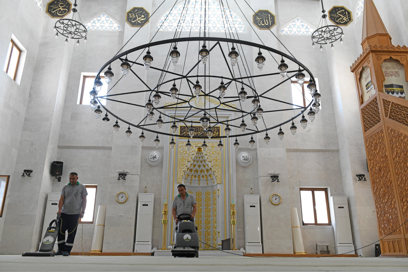 Cami bahçeleri, şadırvanlar, abdesthaneler ve tuvaletler de hijyen kurallarına uygun olarak temizleniyor. Ayrıca camilerin avizeleri, pencereleri, mihrap, minber ve kürsü gibi bölümleri de özenle temizlenerek ibadete hazır hale getiriliyor. Bu sayede vatandaşlar da sağlıklı bir ortamda gönül rahatlığı ile ibadet edebilmenin huzurunu yaşıyor. İbadethanelerin temizliği, belirli periyotlar halinde Kurban Bayramı’nın ardından da devam edecek.