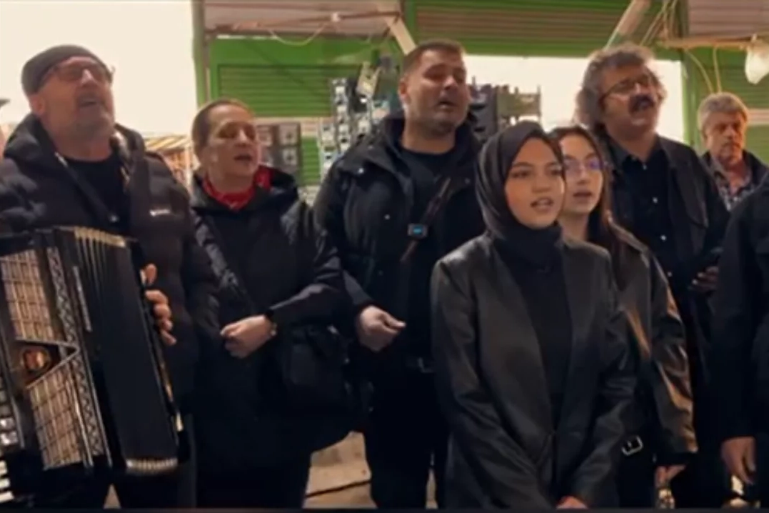 İlk etapta ne olduğunu anlayamayan vatandaşlar, daha sonra Çanakkale türkülerine katılarak o duygu dolu anlara eşlik etti.