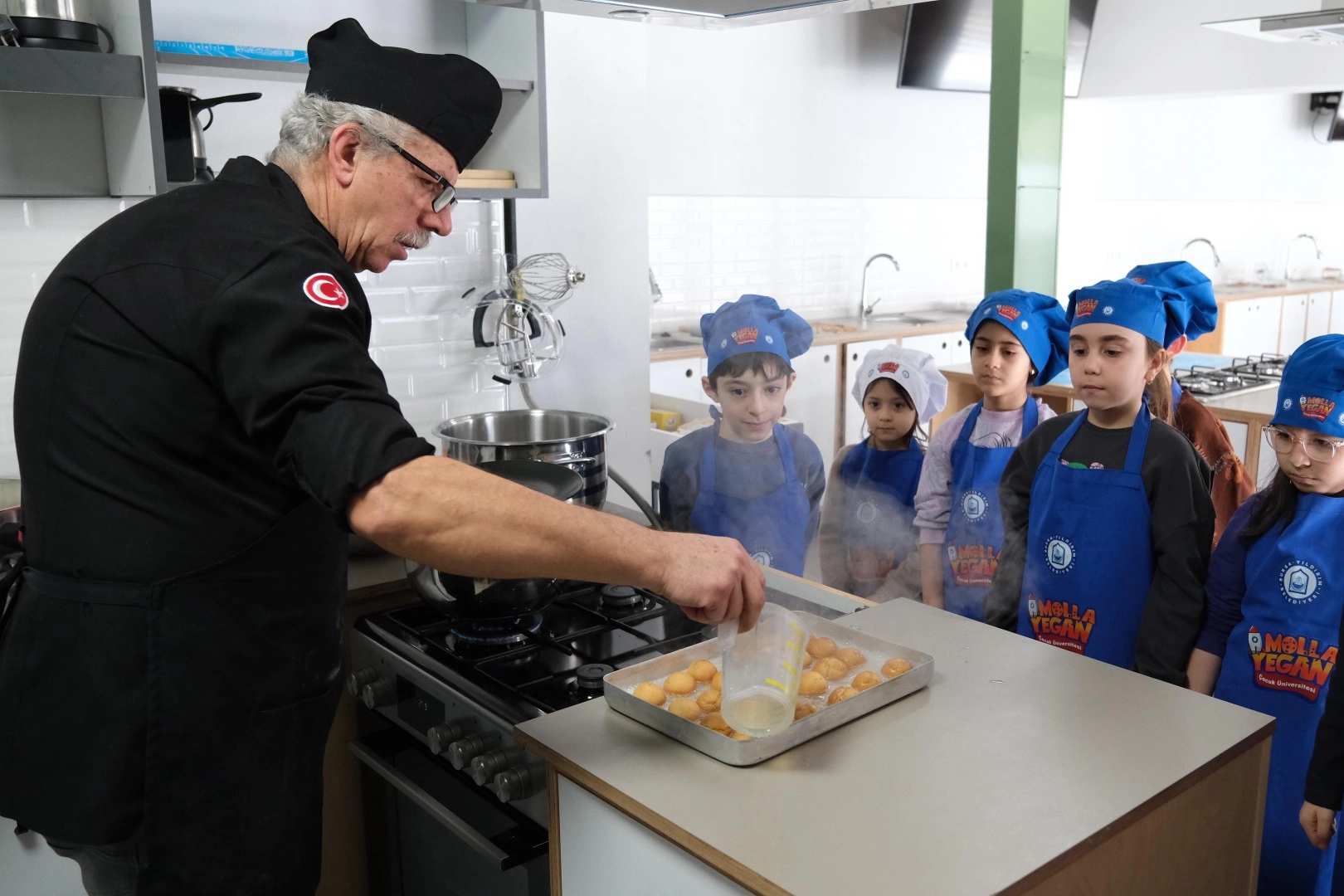 Molla Yegan Çocuk Üniversitesi'nde düzenlenen 'Küçük Şeflerden Ramazan'a Özel Tatlılar' etkinliği renkli görüntülere sahne oldu. Çocuklara paylaşma, dayanışma ve birlik ruhunu aşılamayı amaçlayan etkinlik kapsamında mutfağa giren çocuklar, geleneksel Türk mutfağının sevilen tatlılarından süt helvası ve şekerpare yapmayı öğrendi. Çocuklar yaptıkları tatlıları ise iftarda aileleri ile birlikte yediler.