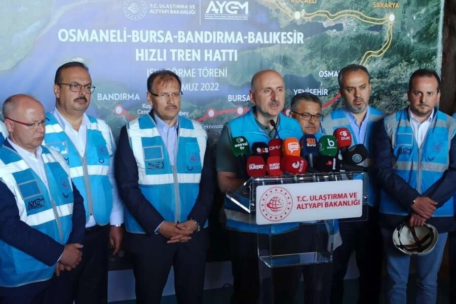 Ulaştırma ve Altyapı Bakanı Adil Karaismailoğlu, Osmaneli-Bursa-Bandırma-Balıkesir Hızlı Tren Hattı Projesi bittiğinde Ankara-Bursa ve Bursa-İstanbul arasındaki demiryolu seyahati kesintisiz, hızlı ve konforlu bir şekilde yaklaşık 2 saat 15 dakika olacağını belirtti. Karaismailoğlu, "Balıkesir-Bursa-Yenişehir-Osmaneli Hızlı Tren Hattı üzerinde 7 adet gar, istasyon, toplam uzunluğu 16,5 kilometre olan 13 tünel, toplam 8 kilometrelik olan 11 kaçış tüneli, 1 kilometrelik olan 5 aç-kapa tüneli, toplam uzunluğu 4 kilometre olan 28 adet demiryolu köprüsü, yine toplam uzunluğu 4 kilometre olan 4 viyadük ve toplam uzunluğu 1,5 kilometre olan 66 altgeçit ile birlikte 155 adet menfez imalatı yapılacak. Bursa, Bilecik ve Balıkesir'i hızlı demiryolu ağına entegre ettiğimiz bu projemize, 22 Kasım 2021 tarihinde başladık. Hızlı tren hattı Gürsu, Yenişehir güzergâhını takip ederek Osmaneli mevkiinde yapılacak üçlü hat ile Ankara-İstanbul HT Hattı'na bağlanacak" dedi. "Bursa'nın batısında TEKNOSAB, Karacabey ve Kuş Cenneti istasyonlarından geçerek demiryolu bağlantısı sağlayacağız"