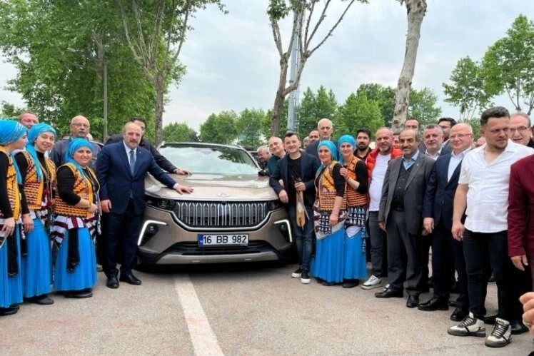 Sanayi ve Teknoloji Bakanı, 28. Dönem AK Parti Bursa Milletvekili Mustafa Varank, Eski Otokoop galerici esnafına TOGG otomobilini tanıtıyor.