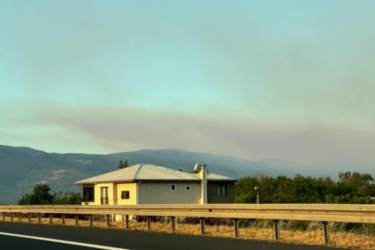 Bursa-Orhangazi otoyulunda elde edilen bir görselde yangın bulutlarının Bursa'da dahi havanın rengini değiştirdiği görüldü.