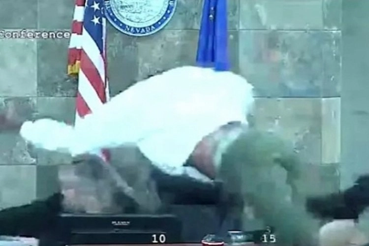 Hakim Holthus kürsünün altında saklanırken, güvenlik güçleri, Redden'a müdahale ederek hakimden uzaklaştırdı.
