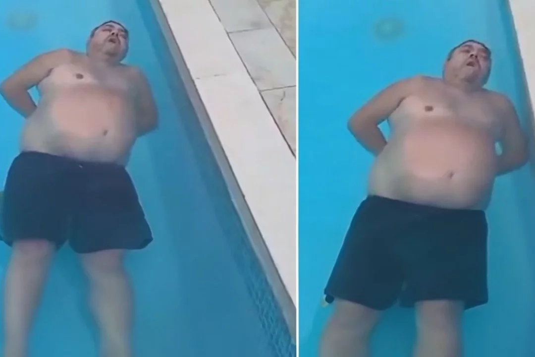Brezilya'da bir kadın, eşinin havuzda saatlerce suyun üzerinde uyuduğu anları cep telefonu kamerasıyla kaydetti. Görüntüler kısa sürede sosyal medyada gündem oldu.