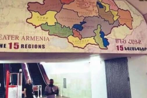 Başkent Erivan’daki Cumhuriyet Meydanı metro istasyonunun duvarında yıllardır bir poster şeklinde asılı bulunan ve gelen tepkilere rağmen kaldırılmayan sözde ‘Büyük Ermenistan’ haritası, yapılan değişiklikle birlikte led ekran üzerine taşındı.