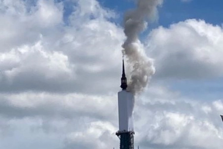 Fransa'nın BFM kanalında yayınlanan görüntülerinde, kuleden yükselen koyu bir duman bulutu görülüyor.