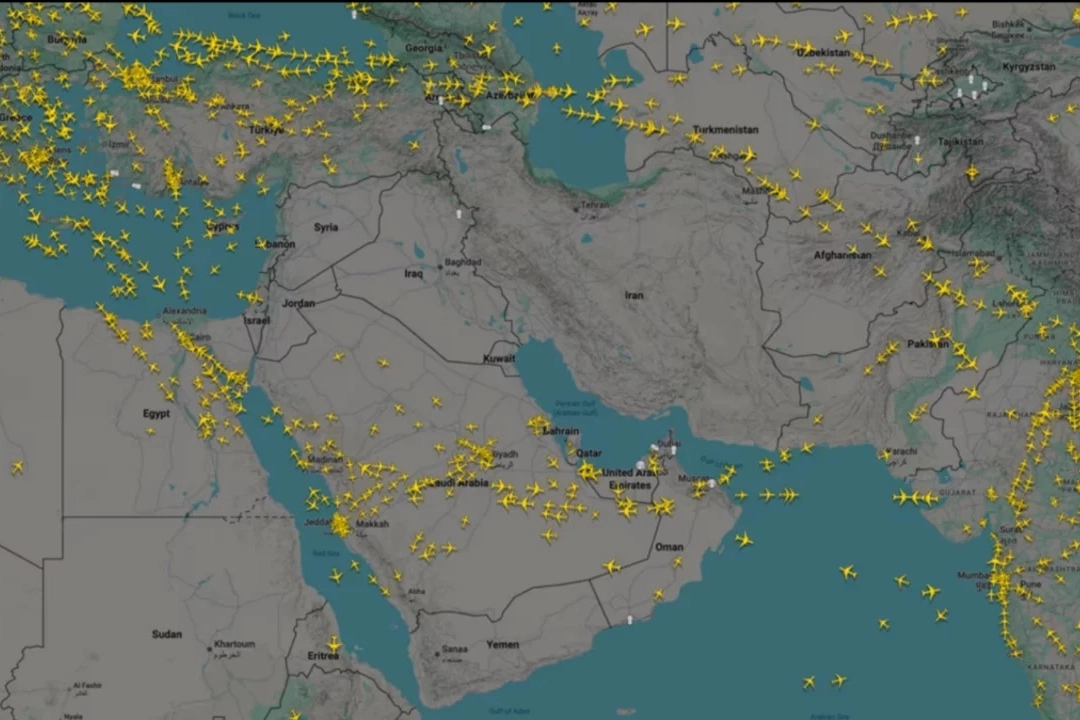 Uçuş takip sitesi Flightradar24 haritalarında Ortadoğu üzerinde dikkat çekici bir boşluk oluştu. Normalde Avrupa, Asya ve Afrika'yı birbirine bağlayan yoğun hava trafiğinin görüldüğü bölgede hava sahaları kapatıldı ya da neredeyse tamamen boşaldı.