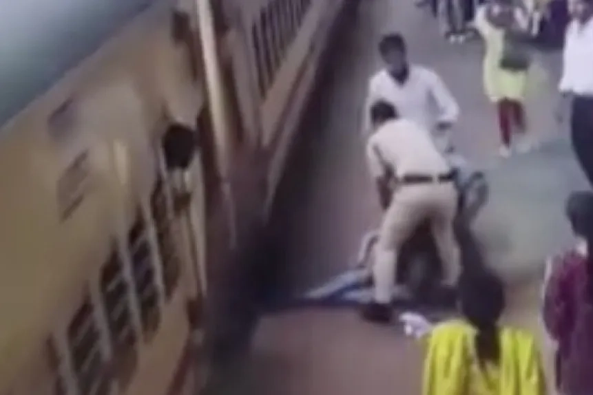 Kadın, polislerin hızlı müdahalesiyle trenin altında ezilmekten kıl payı kurtuldu.