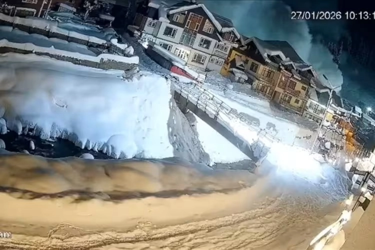Güvenlik kameralarına yansıyan çığın, binaların yakınından hızla geçtiği ve panik yarattığı görüldü.