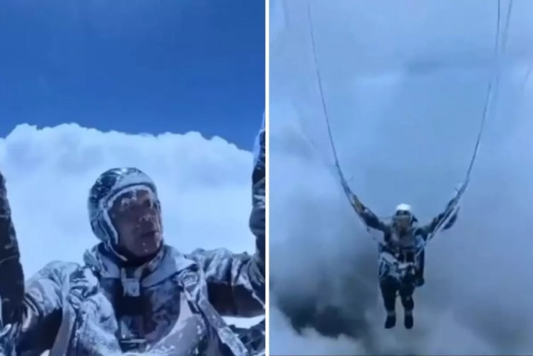 Yayınlanan görüntülerde paraşütçünün buzla kaplı halde paraşütüne tutunduğu, görünürlüğün neredeyse sıfır olduğu bulutların içinde sürüklendiği görülüyor. Oksijen maskesi olmadan nefes almaya çalışan sporcu, en yüksek noktada bulutların üzerinde sallanırken vücudu tamamen donmuş durumda. Hipoksi yaşamasına rağmen bayılmadı.