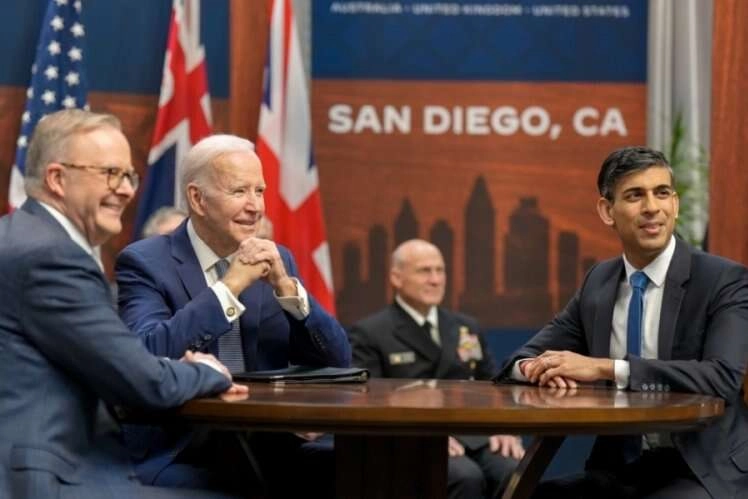 ABD Başkanı Joe Biden, İngiltere Başbakanı Rishi Sunak ve Avustralya Başbakanı Anthony Albanese California eyaletinin San Diego kentinde bir görüşme gerçekleştirdi. Avustralya'nın nükleer denizaltıya sahip olması ve bu alanda teknoloji paylaşımı yapılmasını içeren AUKUS anlaşmasının detaylarının masaya yatırıldığı görüşme sonrasında liderler tarafından ortak bir yazılı açıklama yapıldı.