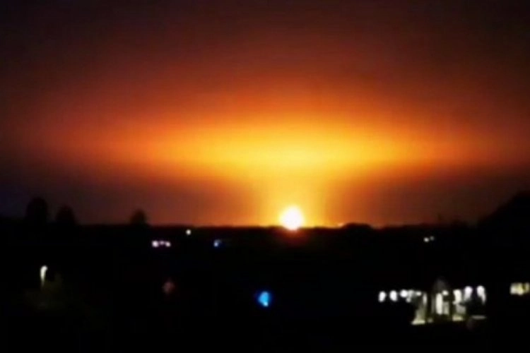 Patlama esnasında gökyüzünde devasa ateş topu oluştu.