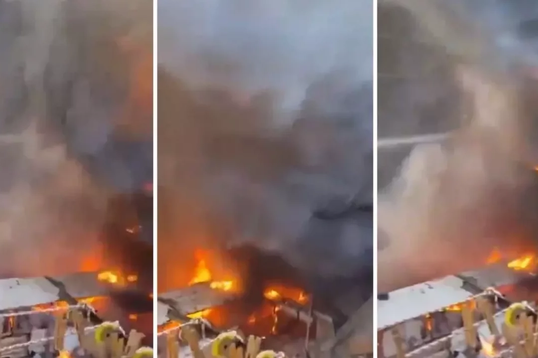 Füzenin düşmesinin ardından terminali alevler sardı. Bölgeden yükselen yoğun duman gökyüzünü kaplarken, çevrede patlamalar meydana geldiği bildirildi. Füze saldırıları sırasında farklı noktalarda da yangınlar çıktığı aktarıldı.