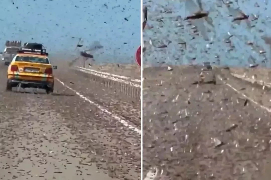 Fas egemenliği altında bulunan Batı Sahra'nın Boujdour kentinden gelen görüntüler adeta kıyamet alameti gibi. Görüntülerde, devasa çekirge sürülerinin bir otoyolu tamamen kapladığı ve hareket halinde bulunan araçlara çarptığı görüldü.