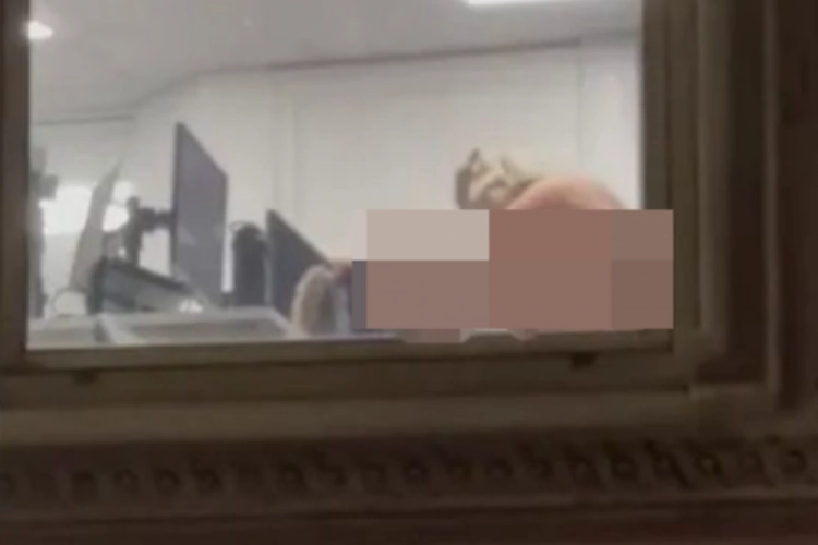 Görüntülerde bir ofiste, sokaktan insanların gözü önünde cinsel ilişkiye giren bir çift yer aldı.
