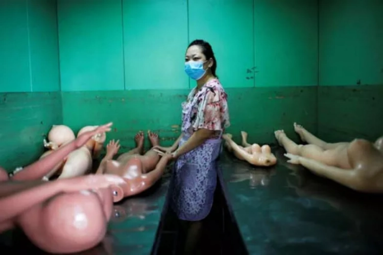 Çin'in Guangdong bölgesinde, cinsel ilişki robotları üreten bir fabrikada işçiler, parçaları birleştirerek, insan formuna sokulan robotları müşterilerin beğenisine sunuyor.