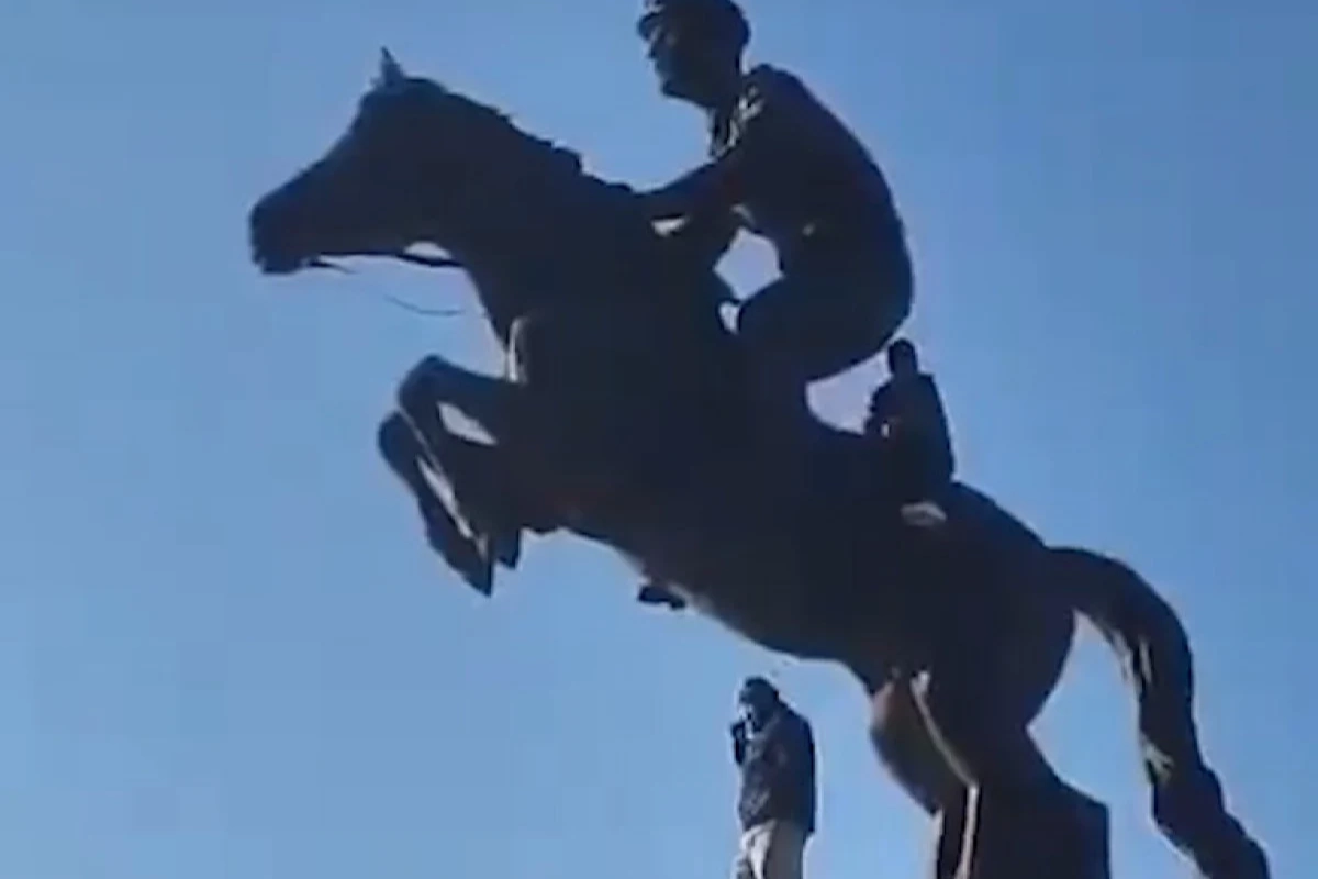 Daha sonra ise Halep'te kontrol altına alınan noktalardan biri olan Basil Kavşağı'ndaki Hafız Esad heykeli indirilmeye çalışıldı.