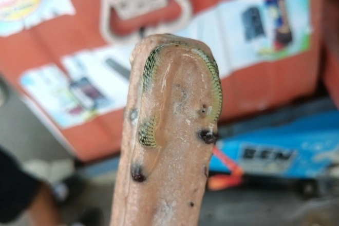 Güney Asya ülkesi Tayland'da sokak satıcısından dondurma alan bir kişi, paketi açtığında dondurmasının içinde yılan kalıntıları ile karşılaştı. Dondurmanın içinde siyah ve sarı renkte olarak görülen yılanın fotoğraflarını sosyal medyada paylaşan genç adam, "Şirin gözlü yılan, daha ölmedin mi? Yol kenarındaki bir tezgahtan aldığım siyah fasulye dondurması. Bu gerçek bir resim ve gerçek bir durum" dedi. Uzmanlar, dondurmanın içinde görülen yılanın Güneydoğu Asya'ya özgü ve hafif zehirli bir tür olan yavru bir "altın ağaç yılanı" olduğunu tespit etti. Yılanların şans ve bereket getirdiğine inanan bir grup Taylandlı sosyal medya kullanıcısı genç adama şans dilerken, bir diğer grup ise hijyen ve üretim şartlarını eleştirerek yetkililere çağrıda bulundu. Tayland basının ulaştığı genç adam, olay sonrası dondurmayı aldığı satıcıya götürerek iade ettiğini belirtti.