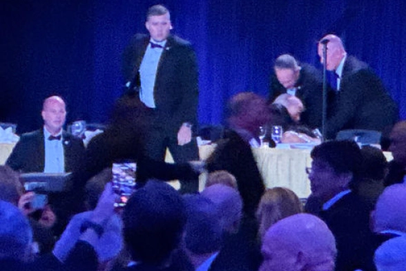 ABD Başkanı Donald Trump, Beyaz Saray Muhabirleri Derneği yemeğinde bağrışma ve silah seslerinin duyulması sonrası güvenlik nedeniyle korumaları tarafından salondan uzaklaştırıldı.