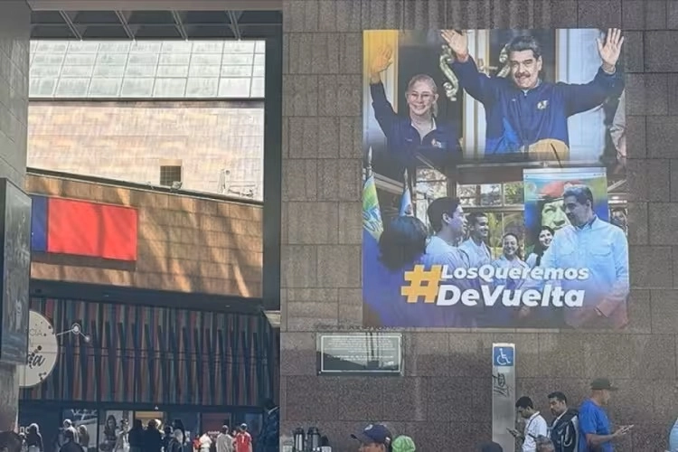 Caracas'taki tarihi Simon Bolivar Meydanı (Plaza Bolivar de Caracas) başta olmak üzere ana caddeler, sokaklar ve bazı devlet binalarına asılan afişlerde, "Maduro'ya özgürlük", "Kaçırılışlarının 25. günü" ve "Devlet Başkanı Maduro" ifadeleri yer alıyor.