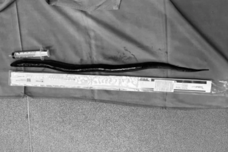 30 santimetre uzunluğundaki yılan balığı, doktorların sindirim kanalında yabancı bir cisim olduğunu gösteren ultrason ve röntgen incelemesi sonrasında bulundu.