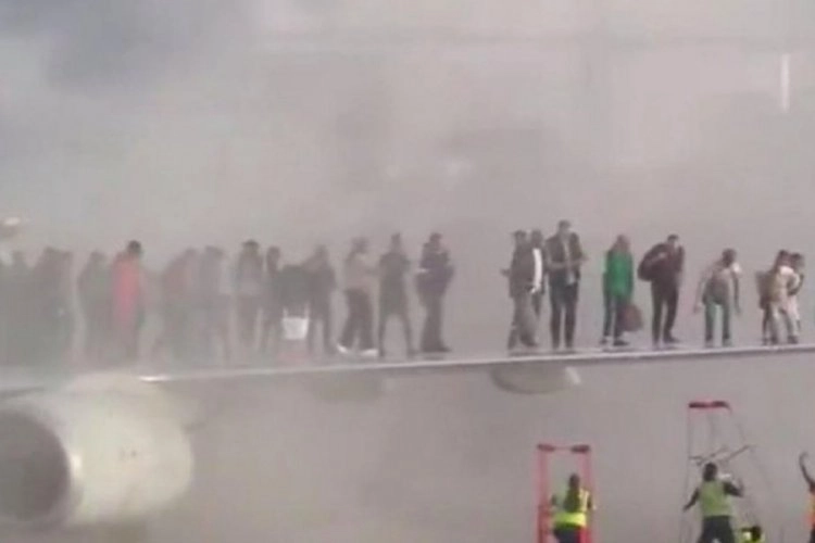 Görgü tanıklarının kaydettiği görüntülerde, Boeing 737-800 tipi uçağın kanadında toplanan yolcuların bir kısmının el çantalarını tuttuğu, uçağın alt kısmında ise alevlerin yükseldiği görüldü.