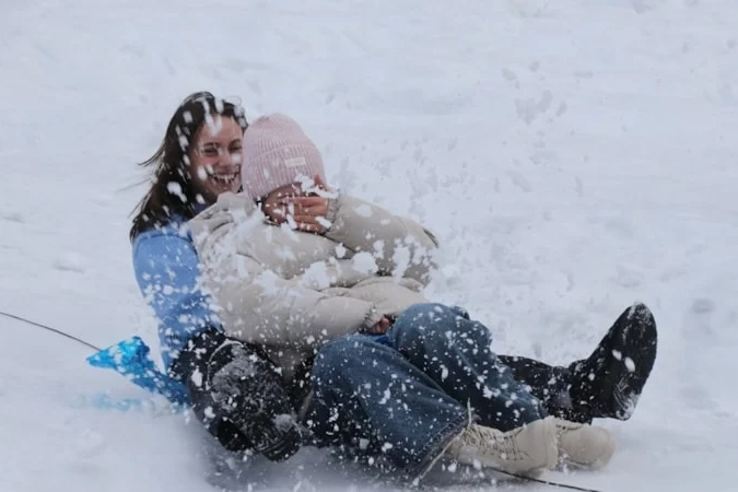 Kar üzerinde tulum ve kemençe eşliğinde kurulan dev horon halkalarının yanı sıra halat çekme, ok atma, çocuklar için animasyon etkinlikleri düzenlenirken, bazı vatandaşlar da poşetlerle kaymanın keyfini çıkardı.