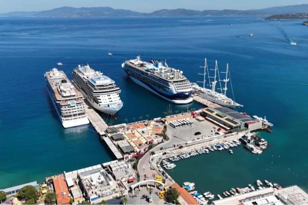 Aydın'ın Kuşadası ilçesi, kruvaziyer turizminde hareketli bir gün yaşadı. Ege Port Limanı, farklı ülkelerin bayraklarını taşıyan beş lüks gemiyi aynı anda ağırladı. Bahama bayraklı "Gemini", "Wind Spirit" ve "Marella Discovery", Marshall Adaları bayraklı "Seven Seas Splendor" ve Norveç bayraklı "Viking Mars" isimli kruvaziyerler limana demir attı.