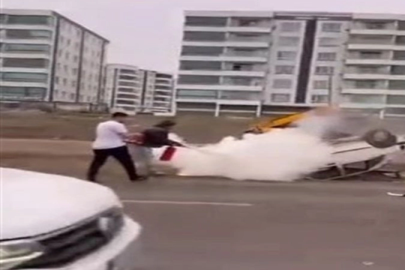Metrelerce sürüklenen otomobil, taklalar atarak ters dönüp alev aldı. İhbarla olay yerine itfaiye, sağlık ve polis ekipleri sevk edildi.