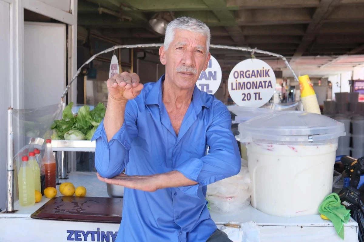 Osman Aslan'ın otogarda bulunan ayran tezgahına zabıta tarafından el konuldu..