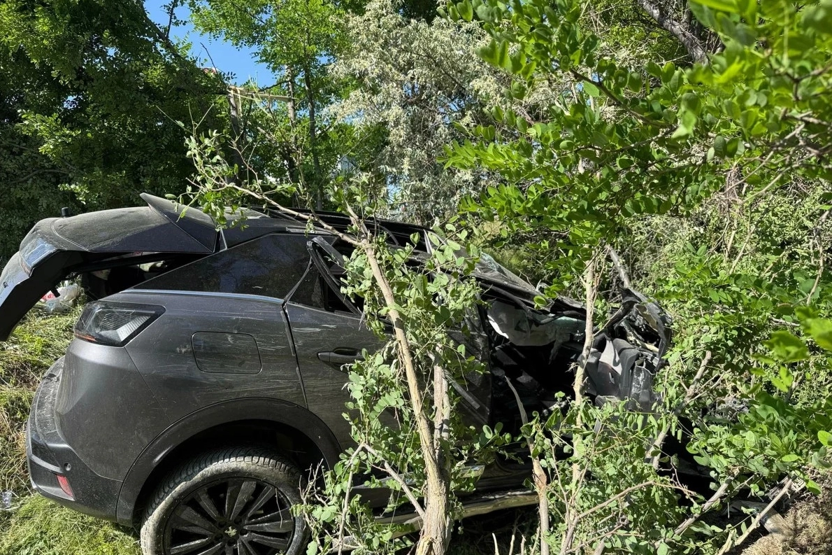 Savrulan araç ardından yol kenarındaki ağaçlık alana girerek durabildi.